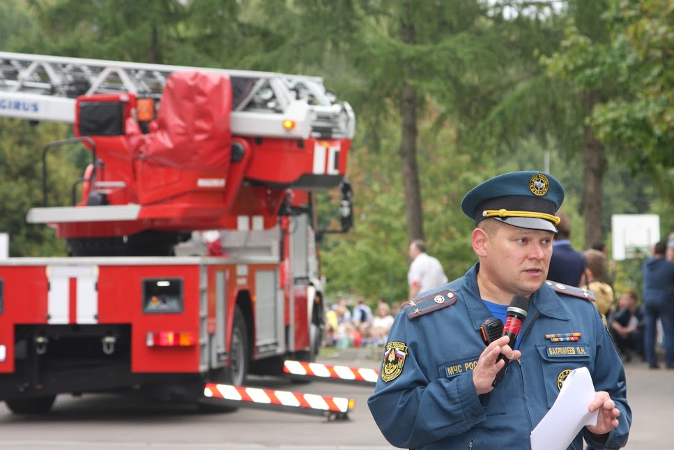 Для полного понимания детьми и всех заинтересованных зрителей, действий пожарных, во время проводимых учений, происходящее комментировал заместитель начальника 26 ПСО ФПС по г. Москве Петр Вахрамеев.