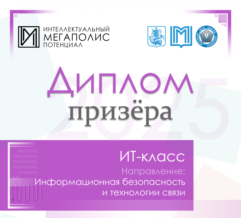 В этом году четверо учеников ИТ-класса стали призерами в номинации ИТ-класс по направлению «Информационная безопасность и технологии связи». Поздравляем Ульяну, Ярослава, Тимофея, Григория и их наставников с победой!