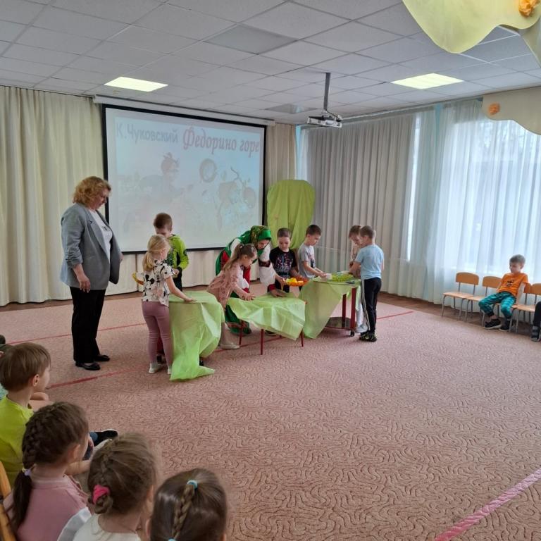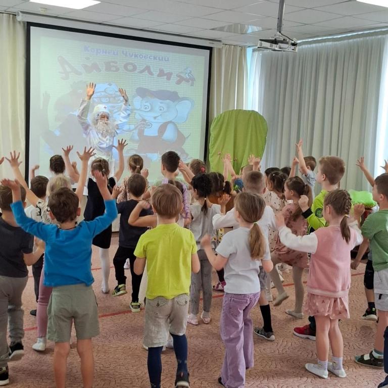 Вместе с воспитателями дети отправились в весёлое путешествие в мир сказок, где встретили Федору, Бармалея и доктора Айболита.