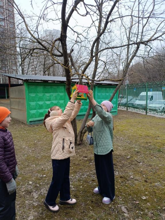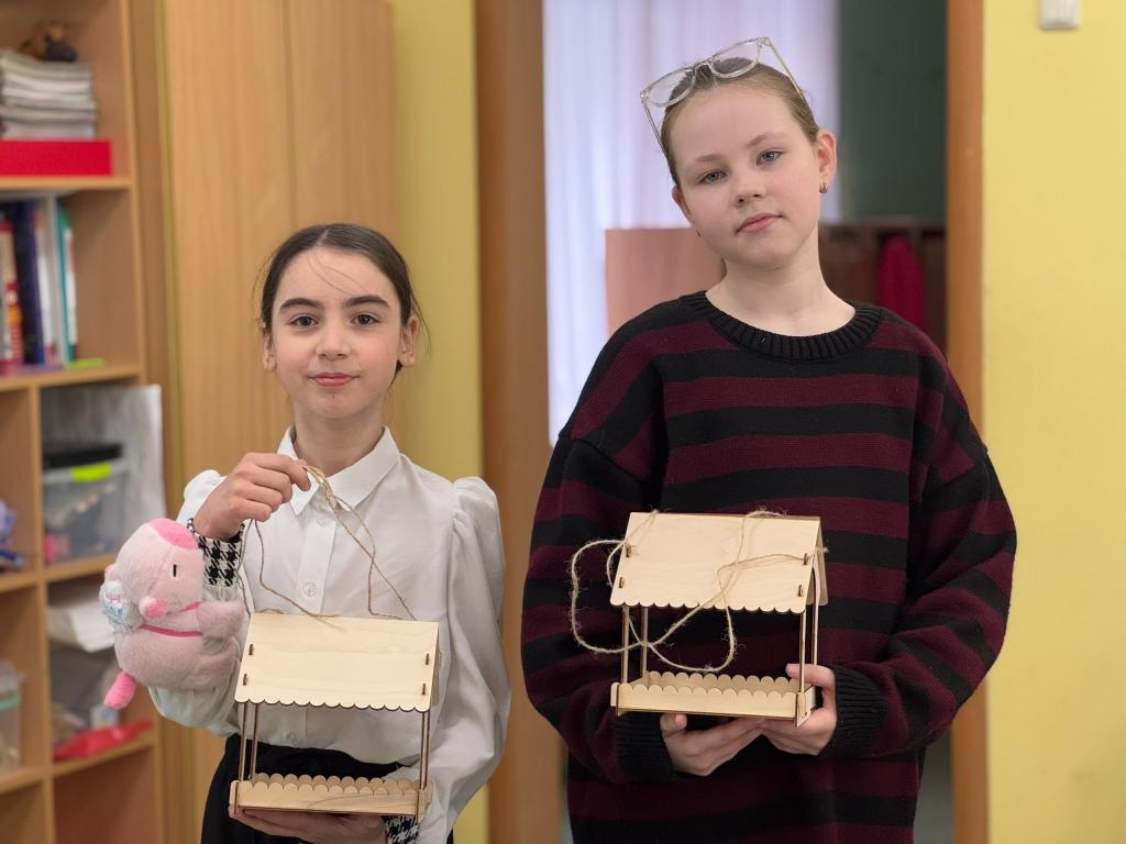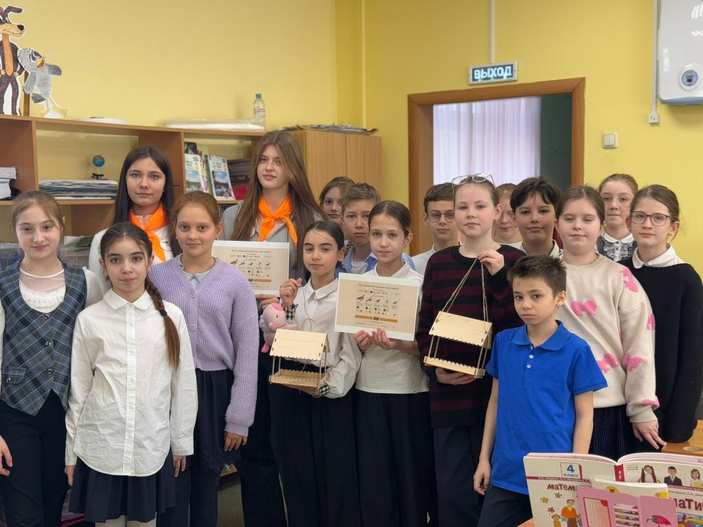 Волонтеры оставили в классах познавательные памятки, а ребята из начальной школы изготовили кормушки, которые разместили во дворе школы.