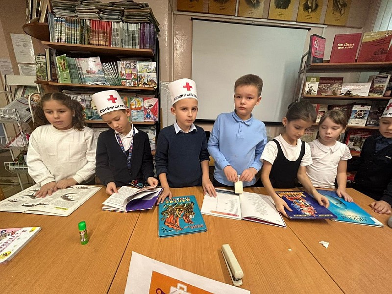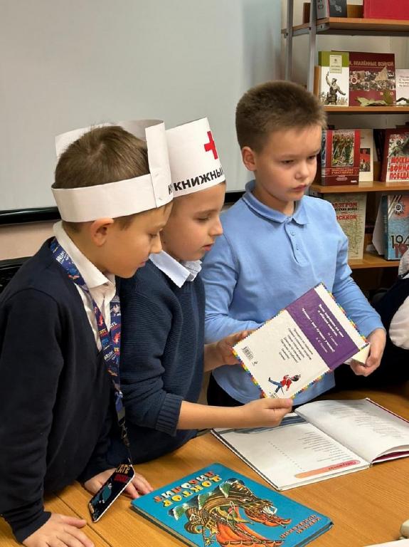 Под руководством библиотекаря Родиной Наталии Борисовны ребята изучили «анатомию» книги, освоили азы книжной хирургии и с каждой переменой пополняли стенд «Ура! Меня спасли!» всё новыми «вылеченными» экземплярами. Работала даже своя «скорая книжная помощь»!
