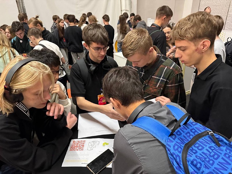 Ребятам вручили именные бейджи, а дальше учеников ждала насыщенная программа: одни отправились на кофе-брейк, другие сразу же принялись выполнять задания в квестах. Позже в большом зале перед школьниками выступили сотрудники 1С, рассказавшие об истории компании.